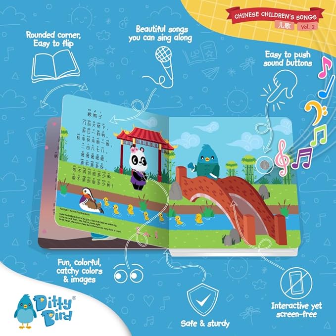 - 💡 1 Bilingual Sound Book, Tons of Rewards: More than keeping your tots entertained for hours, Ditty Bird Books with sound are with you in your child's learning & development. Use these books for 1 year olds to help your kids learn a new language, get familiar with Chinese, expand their vocabulary, cognitive, fine motor & auditory skills.