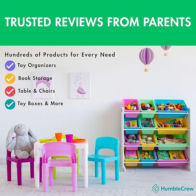- Organize & Declutter Easily – This space-saving toy organizer includes 12 plastic bins (8 standard, 4 large) that help sort and store toys, books, and games, making clean-up quick and simple.