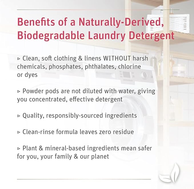 - No Harsh Chemicals: Our laundry solutions are septic safe and made from naturally derived plant and mineral based ingredients to ensure the best cleaning products with no phosphates, phthalates, chlorine, toxins, dyes or masking agents