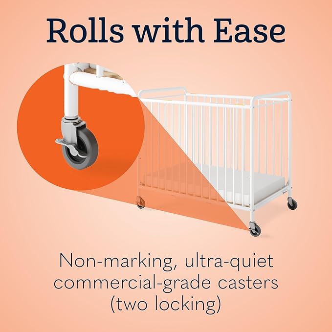 - Space-Saving Metal Crib with ClearView Panel – Compact footprint maximizes space in childcare settings, while the transparent side panel ensures full visibility for easy monitoring and peace of mind.