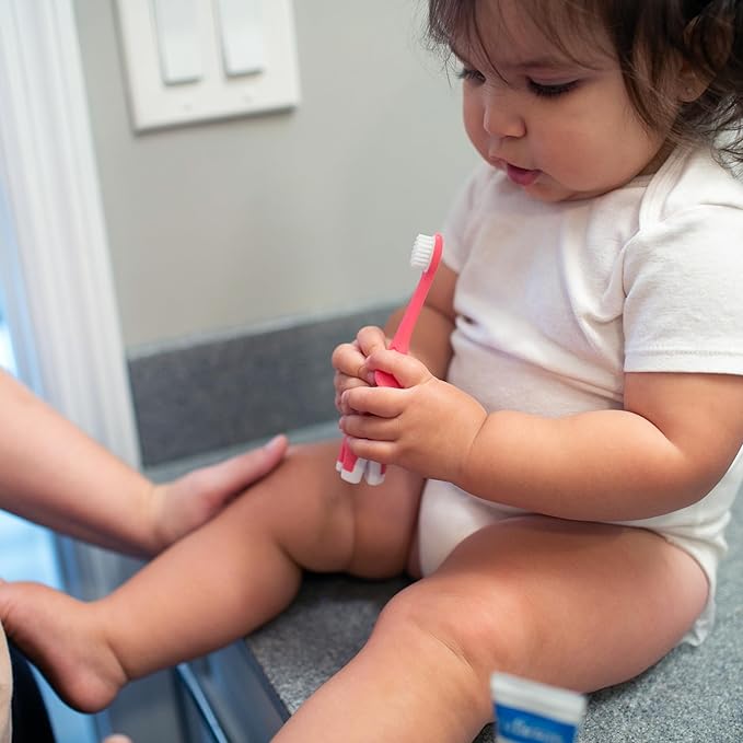 - BABY’S FIRST TOOTHBRUSH. Super-soft bristles safely and gently clean baby’s first teeth and gums.