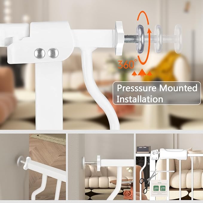 - AUTOMATIC & MULTI-FUNCTIONAL: The baby gate will close automatically when handle is released. No need to worry about forgetting to lock the gate. Double sided design allows you open it from both directions for convenience. Suited for stairs, hallway, doorways, kitchen, living room and any open space