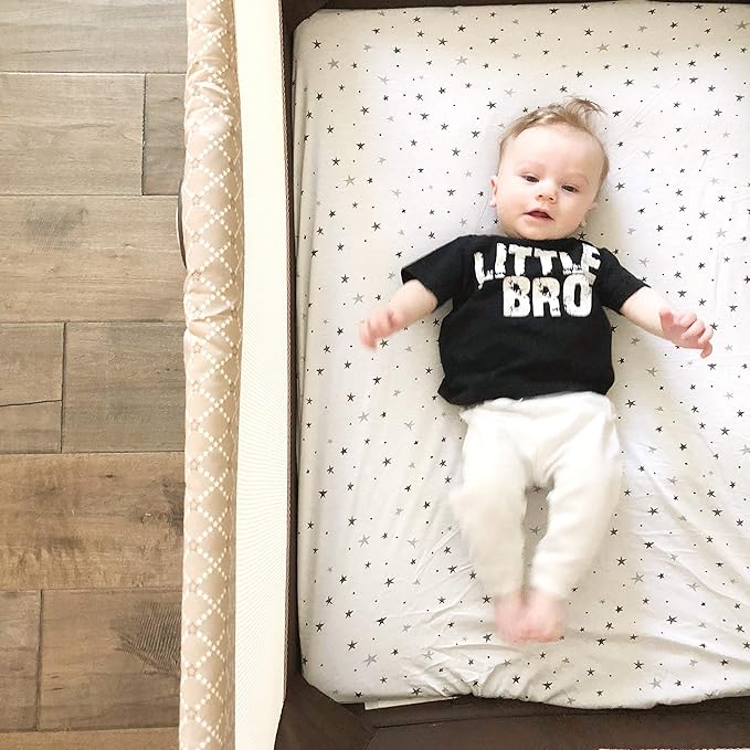 - The comfort of our soft and breathable, lightweight, 100% Superior Quality Combed Jersey Knit Cotton creates a buttery soft sleeping surface for your baby to sleep on. This neutral two-pack features a modern and charming twinkling grey stars print on a fresh white backdrop will complement your baby’s nursery décor. You can be rest assured that your baby’s sleep surface will always be covered and protected with a clean, trendy, and soft cotton sheet with this two-pack!