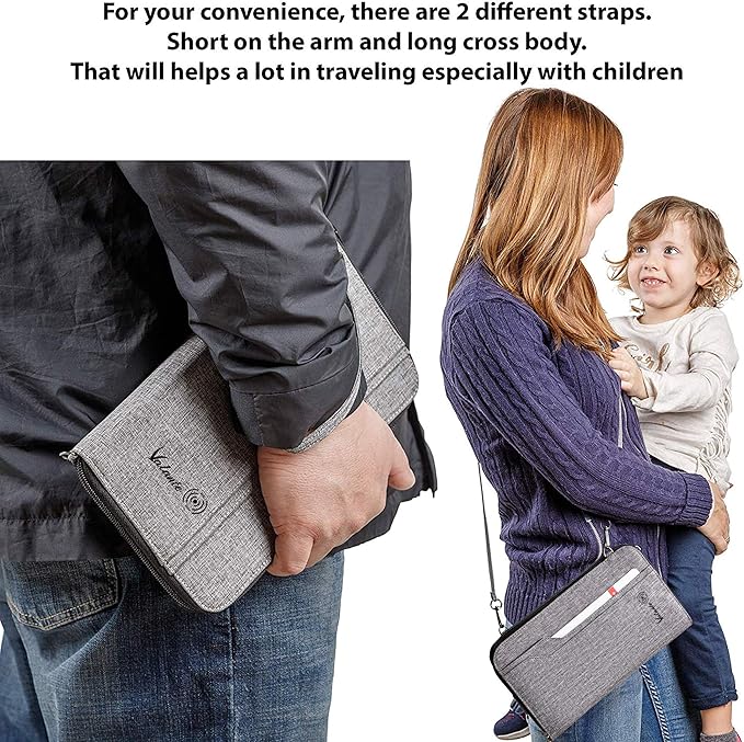 Valante Premium Family Travel Document Organizer Capacious RFID Passport Holder Wallet (Large, gray)