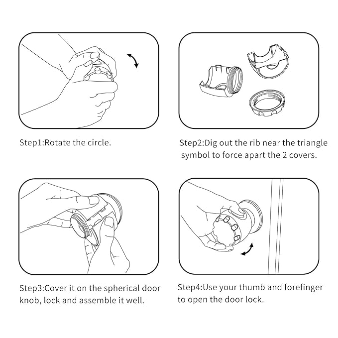 - Easy Installation/Removal-No tools requirement, no harm to the door. Force apart the 2 covers, then set it on the door knob and close the two covers, the door knob is in lock.It also can be easily removed with your hand