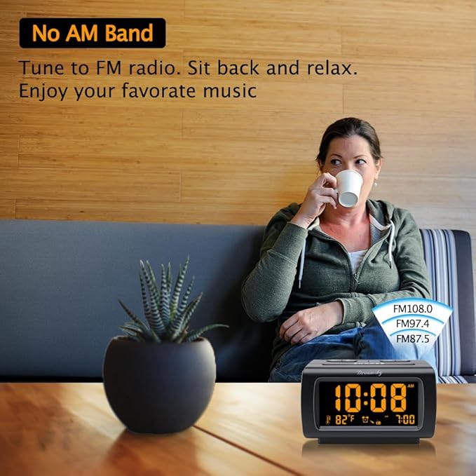 DreamSky Alarm Clock Radios for Bedrooms with Battery Backup, Large Big Numbers with Brightness Dimmer, USB Port, Bedside Digital FM Radio with Sleep Timer, Temperature, Adjustable Volume, Snooze