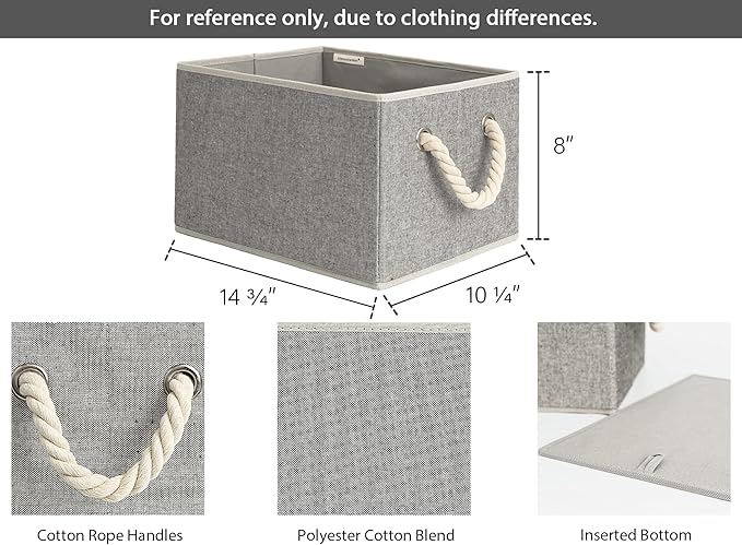 - Closet baskets feature two soft rope handles for comfortable grasping and easy carrying.
