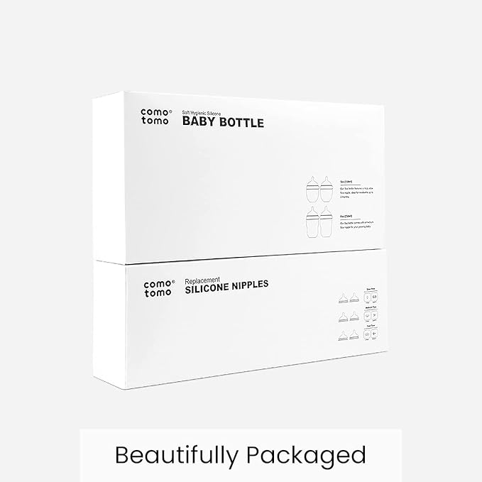 - Comotomo's Baby Bottle Bundle includes two 5oz. bottles, two 8oz. bottles, and a package each of our slow flow, medium flow, and fast flow replacement nipples. (Replacement nipple packages come with two nipples each.)