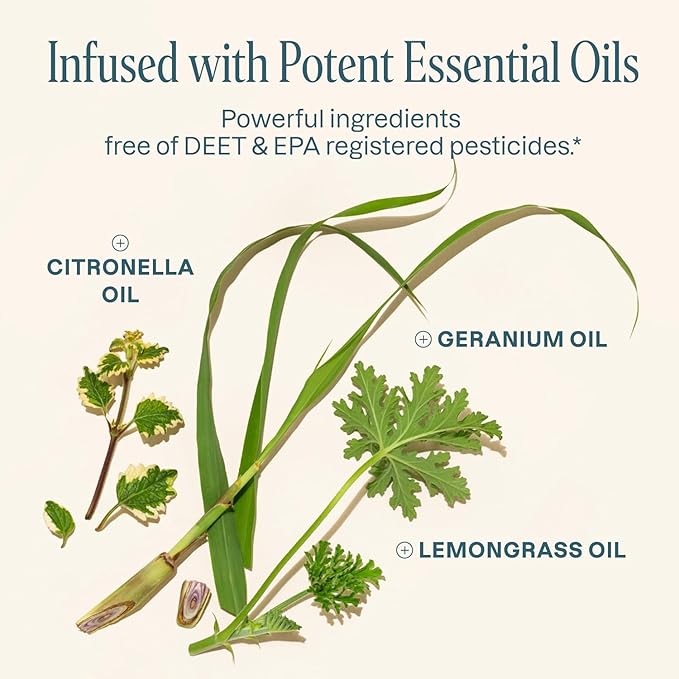 - DEET-Free & Powered By Essential Oils – Active ingredients derived from plants