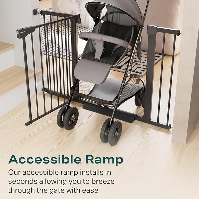 Cumbor 29.7-46" Baby Gate for Stairs, Mom's Choice Awards Winner-Auto Close Dog Gate for The House, Gifts for Mom, Easy Install Pressure Mounted Pet Gates for Doorways, Black