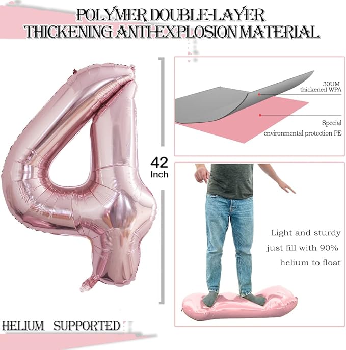 - 2 pcs Number 4 Balloons in Package,Double Guarantee for the 4th Birthday Party or 44th Birthday Party