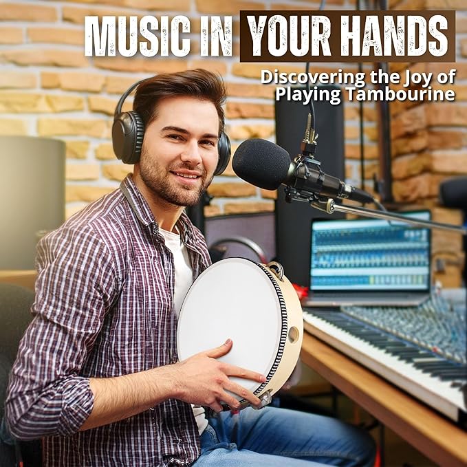 - Set of 2 large and small tambourines - 8" and 6" sizes, with a single-row 4 pairs jingle set for the 6" model, and either a single-row 5 pairs jingle set for the 8" model