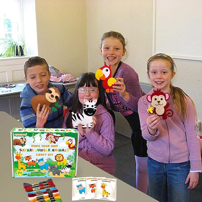 - SAFARI ANIMALS SEWING KIT FOR KIDS. This kit contains everything needed to make your very own felt jungle garland. A full set of 10 decorations (giraffe, lion, elephant, monkey, tiger, zebra, sloth, hippo, parrot, and crocodile ) to be used individually or strung along with ribbon as a garland.