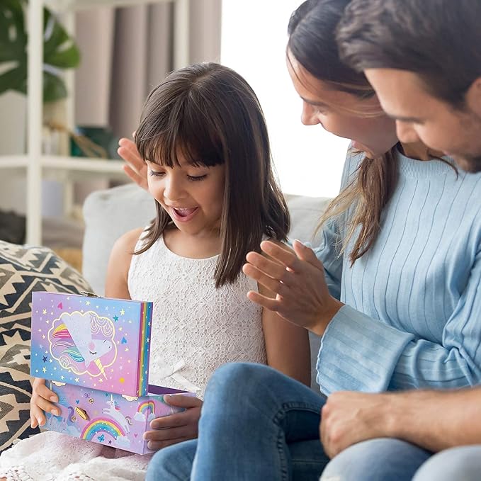 - ⭐ Quality Parents Can Trust - Crafted with durable pine fiberboard material and a stylish gold-tone latch, our kids jewelry box is heavy and durable – so your gift is guaranteed to last! Rigorously tested for safety, each girls jewelry box meets CPSIA, ASTM and EN71 guidelines, ensuring your little ones are safe and in good hands.
