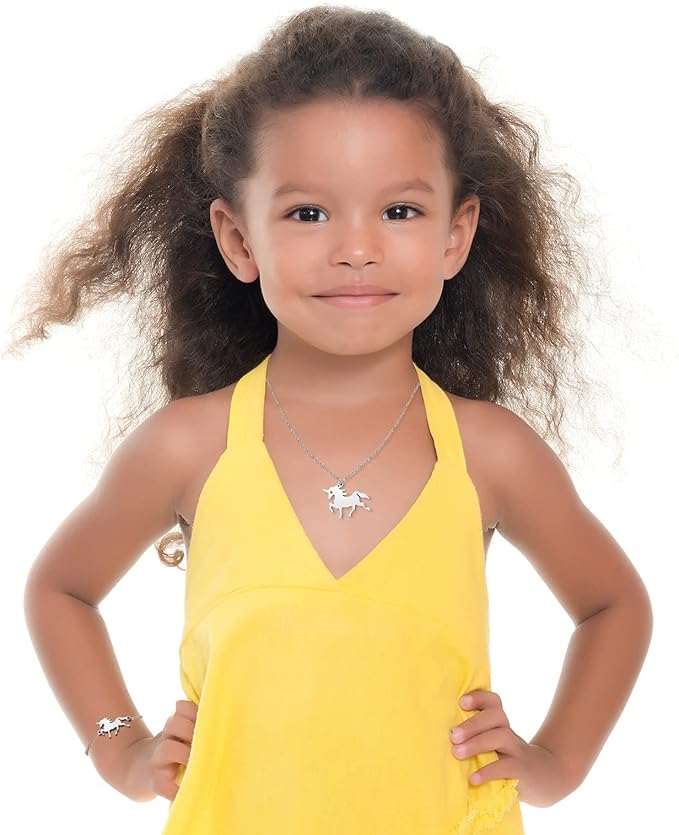- ⭐ Unlike others, you’ll get 3 gifts in 1 box, including a beautiful Unicorn Music Box, plus a charming Unicorn bracelet and a matching girl's necklace. With the little girls jewelry set neatly packaged inside, you won’t have to keep looking for something else or gift an empty box. The girls bracelet and Unicorn necklace pendant have fully adjustable links and are made of 100% nickel-free stainless steel.