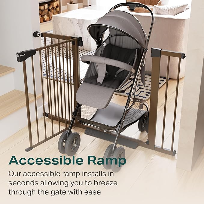 - 【Large & wide】30.5 Inch height & 29.7-46 Inch width, This Brown gate is suitable for most doors! Our large walk thru gate makes it easier to walk when holding the baby. Great choice for new parents
