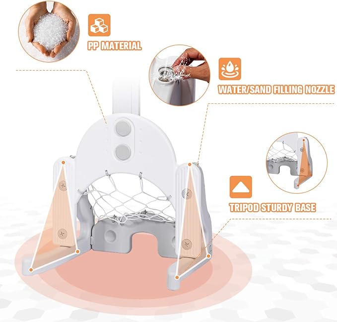 - 【Stable Triangle Structure】 Triangular structure base effectively increases the stability of the entire basketball hoop and can prevent children from being injured. In addition, There is a piston on the base of the basketball hoop. After opening it, you can fill water or sand to increase the stability of the base.