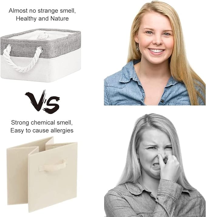 - No chemical smell: These Organization and Storage are mainly made of natural linen, thick EVA and lining canvas.Stick together using the latest technology, no glue, sturdy and durable, with only a faint linen smell.Baskets gift for empty are wonderful choices.