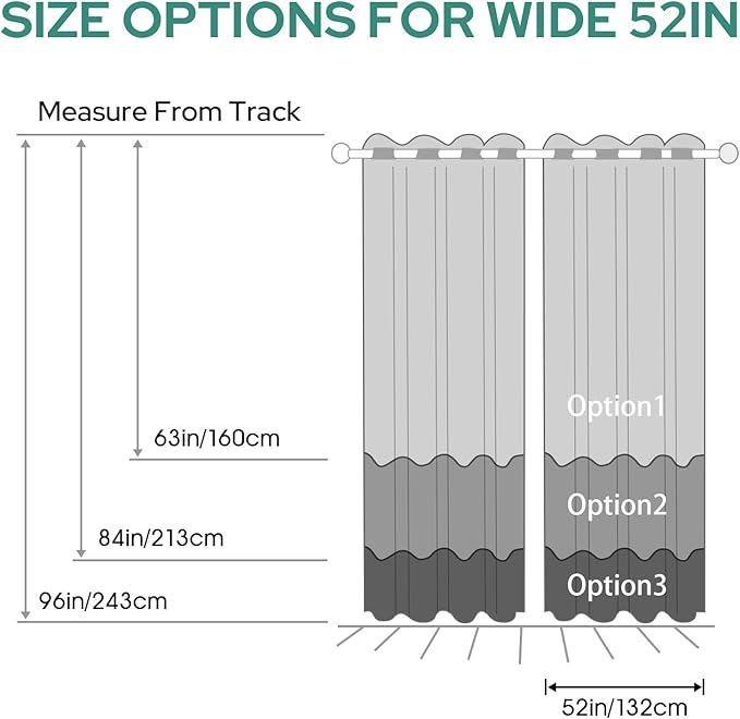 - ★PACKAGE MADE: Your package includes two gradient curtain panels. Each panel measures 52 inches in width, a total width of 104 inches. 8 silvery grommets (1.6-inch inner diameter) of each panel make the blackout curtains easy to install and slide.