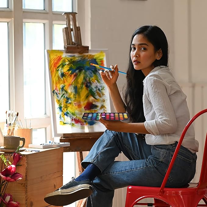 - Portable Watercolor Cake -- These watercolor pan set large capacity but lightweight, comes in a lightweight and sturdy plastic box makes it easy for storage and carrying. The removable cover design of case allows it not only works as a normal cover for pan, but also as a palette, to keep the watercolor paints organized and tidy. Profect for ield sketching, natural journaling or coffee-house painting, capture every beautiful moment by watercolor painting whenever inspiration strikes