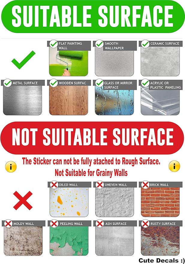 - Surface Recommendation Wall, Glass, Metal, Fortniture : Material Vinyl