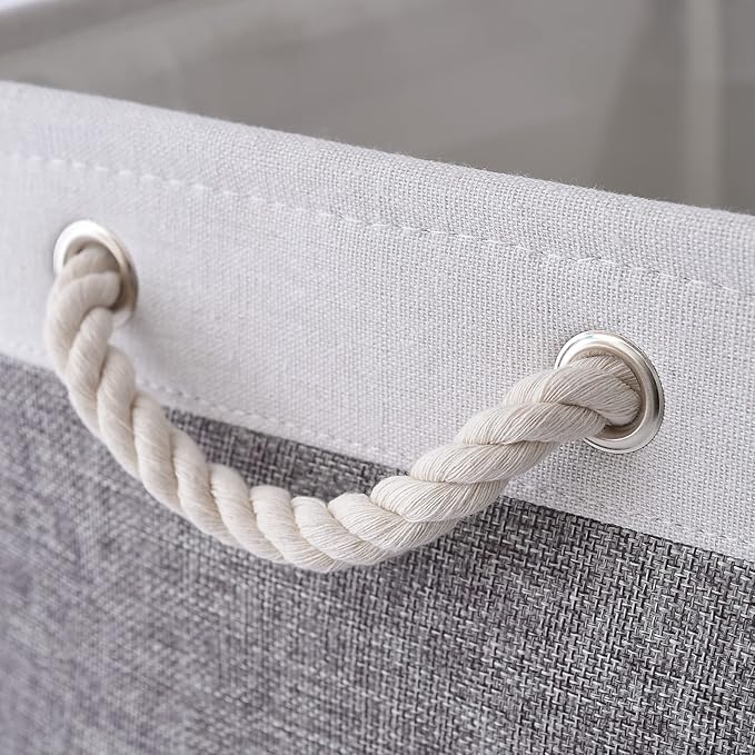 TcaFmac Collapsible Storage Bins for Organization - Large 3 Pack Canvas Storage Basket for Shelves, Organizer Baskets for Organizing for Closet Cloth Dog Toy Baby (White & Grey 16x12x8 inch)