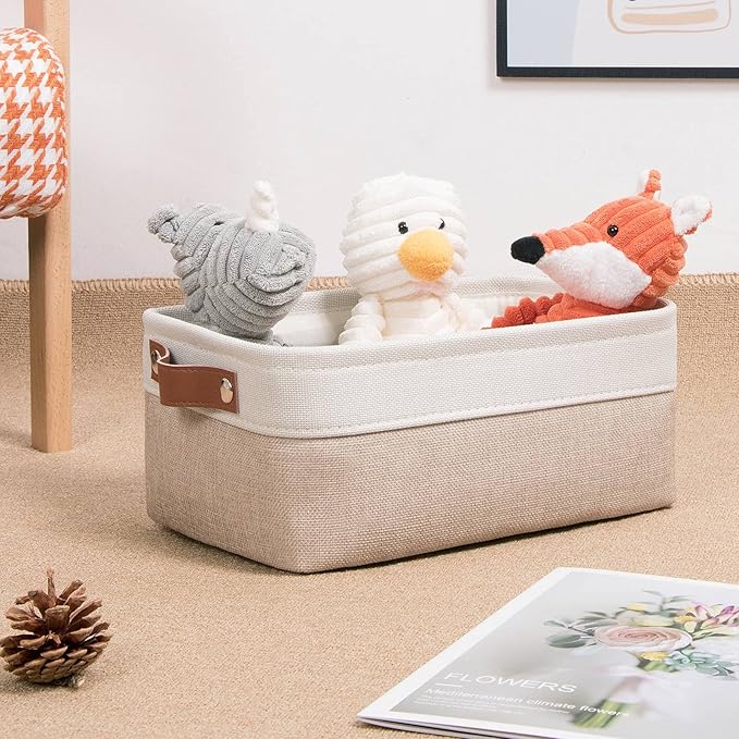 DULLEMELO Small Storage Bins, Storage Baskets for Organizing, Collapsible Rectangular Fabric Baskets for Shelves, Closets, Nursery, Home, Office, Empty Gift Baskets (6-Pack, White&Khaki)