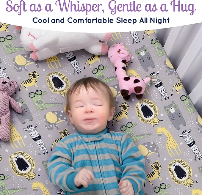 - ๐FUN & CHARMING DESIGN - Our crib mattress sheets features an adorable Safari Jungle pattern. This charming design brings the calming essence of the sea into your baby boy nursery.
