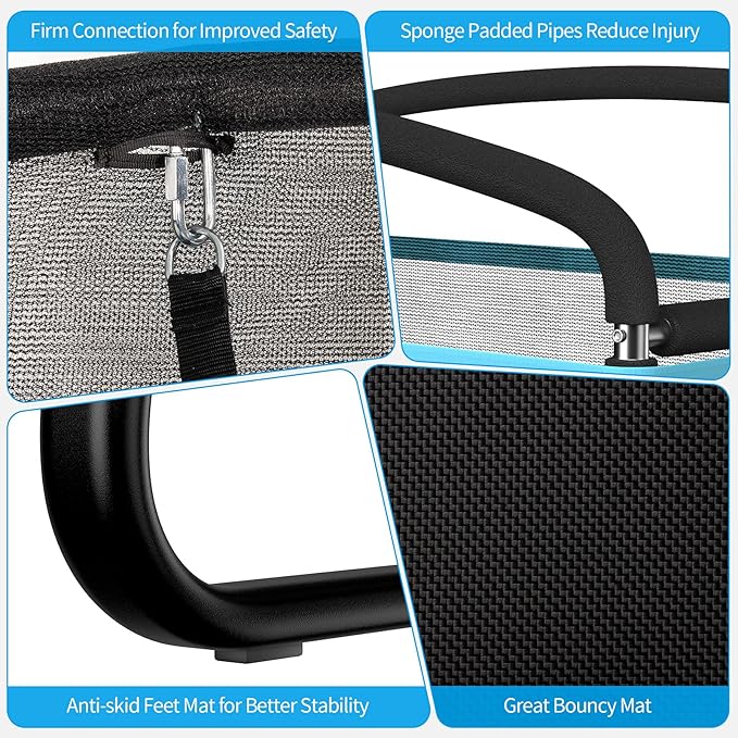 - High Elasticity: Featuring 40 galvanized springs and a high density jumping cloth, this premium trampoline offers an ultimate bouncing experience. Kids will enjoy jumping and release endless energy joyfully. Meanwhile, bouncing helps children bone growth.