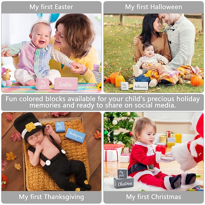 - Let’s Talk Events! Your baby milestones include Christmas, Halloween, Easter and Thanksgiving. Imagine those cute baby photoshoot outfits! Other words featured “My First”, “Today I Am”, “Look Who Is” and even school “Grade” - so you can use your monthly baby milestone blocks for their entire life!