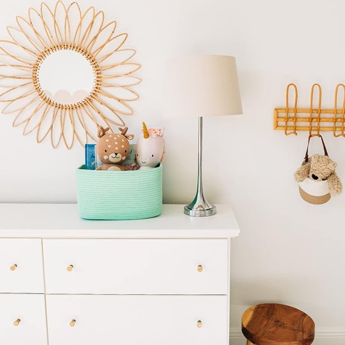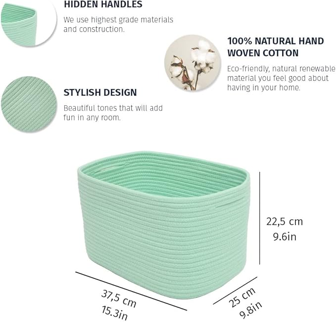 OrganiHaus Green Basket for Shelves, Decorative Cloth for Organizing, Cotton Rope Storage Basket for Toys, Small Woven Baskets for Storage