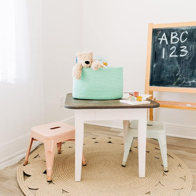 - Premium Cotton Rope Weave – These beautiful rainbow toy baskets are woven with high-quality, all-natural cotton to give them the right balance of softness and durability. This makes them great for bedrooms, nurseries, and laundry rooms as rainbow room decor.