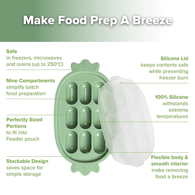 - Perfect Portion Size - 0.3oz portions (9 in total) pop out effortlessly. Just right for creating easy-grab breast milk popsicles that fit perfectly with the Haakaa Fresh Food Feeder and Teether Pacifier.