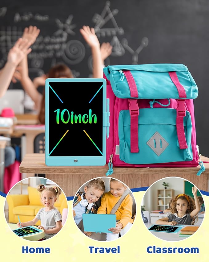 - ✨EYES PROTECTION LCD WRITING TABLET: This 10 inches drawing tablet adopts 2024 latest LCD pressure-sensitive technology, easy for viewing and graffiti, no radiation, no glare, won't hurt children's eyes like other electronic products. No discomfort even after prolonged use. And our doodle board is made of high quality ABS material, strong and fall-resistant, safe and odorless, very suitable for toddler children to use. Wonderful toys for 3 4 5 6 7 year old girls boys kids