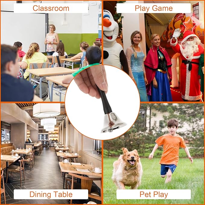 - BLACK HANDLE: Each metal hand bell is equipped with a black handle, offer you comfortable grip, not easy to slip from your hands, the ergonomic handle design makes you more comfortable to hold the hand bell when shaking the bell