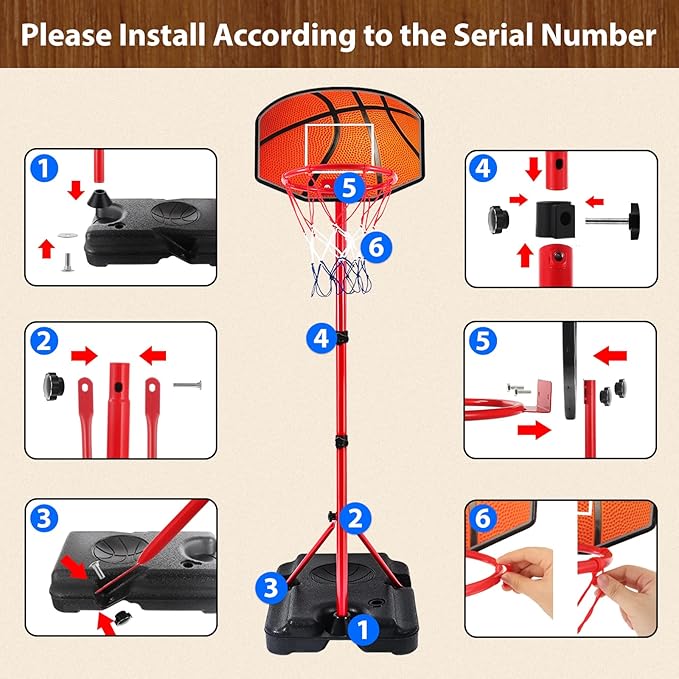 - 【Height Adjustable】The height of our mini basketball hoop can be adjusted according to kids’ growing height from 3.5ft to 5.3ft, suitable for toddlers 1-3 and elder kids 3-6. You can make different height stands for your kids. Awesome indoor toys for 2 year old boy girl.