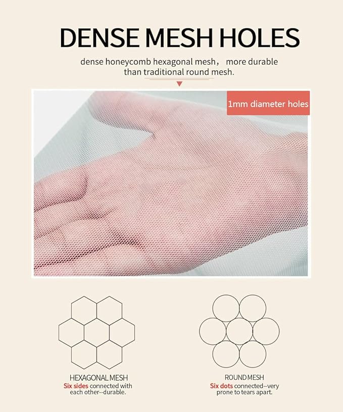 - ✔ Dense Mesh Holes: This bug net for stroller with 1mm diameter honeycomb hexagonal mesh, more durable than traditional round mesh.Perfectly against tiny mosquito with Ventilated and breathable.