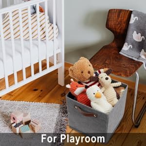 - 【Premium Material】The fabric used in the 11 inch fabric storage cube storage organizer bins is fashionable and breathable, sturdy, breathable fabric materials with no peculiar smell, and the cardboard inside is strong and easy to fold. These cloth storage baskets for shelves are sturdy enough to hold your stuff well. The leather handle is durable and easy to carry