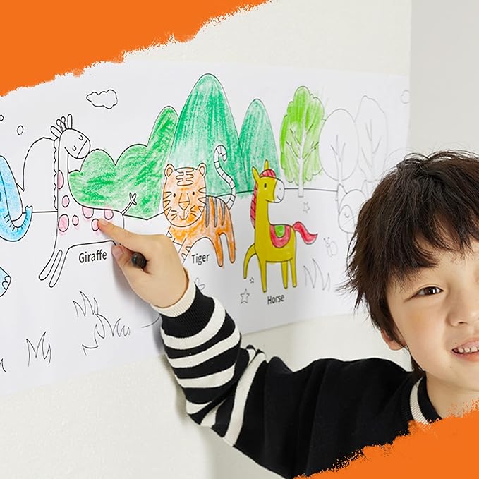 YPLUS Peanut Crayons Set for Kids, Art Case with 24 Colors Crayons and Wall Sticker Paper Rolls, Non-Toxic Toddler Coloring Supplies Stocking Stuffers for Kids Toddler