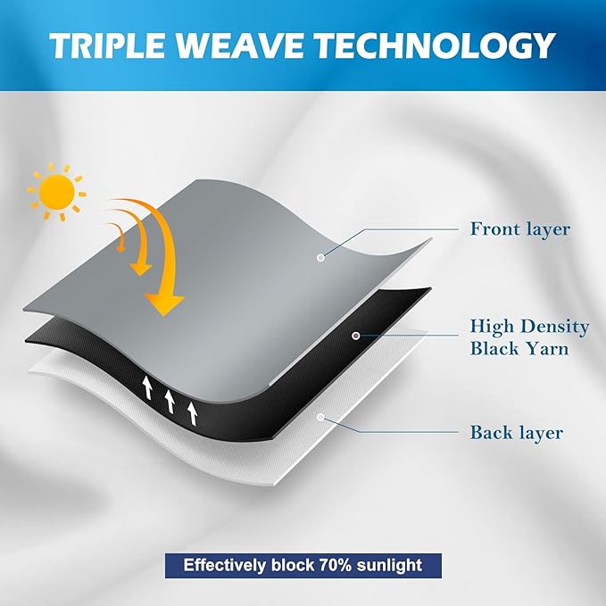 - Grommet Construction, Good To Go: Thread trimmed and wrinkle-free, ring (1.6 inch inner diameter) fits easily with standard curtain rods. All sets for you to put them up right away. Triple weave blackout fabric balances room temperature by insulating against summer heat and winter chill. Protect your furniture, floors.
