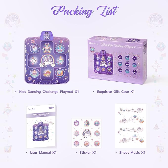 • ใ€๐ƒ๐ฎ๐ซ๐š๐›๐ฅ๐ž & ๐‹๐จ๐ง๐ -๐‹๐š๐ฌ๐ญ๐ข๐ง๐ ใ€‘ Designed specifically for girls aged 4-8, our Unicorn Dance Mat is built to withstand hours of active use. Made from strong, tear-resistant materials with reinforced stitching, it ensures durability and stability, providing endless fun while maintaining its shape and functionality through every jump and step. Perfect for young dancers who love to move!