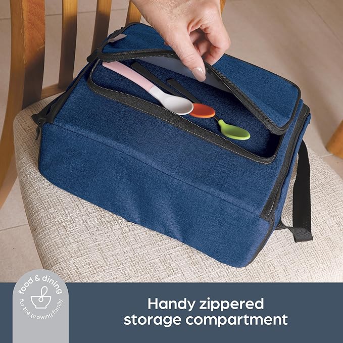 - ππ¨π§π―ππ§π’ππ§ππ π π¨π« πππ«ππ§ππ¬: This isn't just a booster seat for the dining table. Featuring a carry strap, it quickly and easily can be thrown over your shoulder for on the go adventures & the built-in storage gives you plenty of space to store the necessesities. Dine with confidence knowing you have a dependable high chair solution no matter where you are.