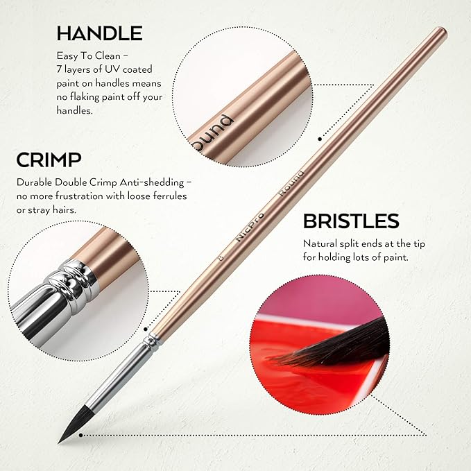 - Upgraded Set: Unlike other brand ,Nicpro brushes are made of synthetic squirrel, feature excellent absorption and elasticity.Secured with high quality aluminum crimped ferrules, won’t loosen or fall apart - built to last