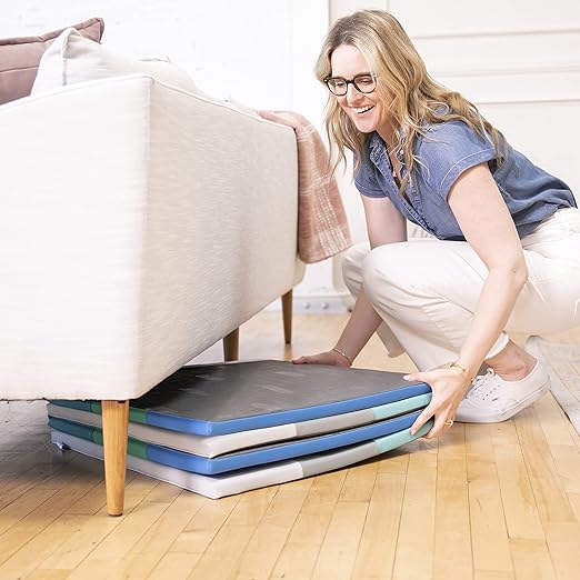 - Folding Design: Quickly assemble with sewn-in stay-put fasters; mat folds into a compact square for space-saving storage in closets, large bins, or under the bed when not in use
