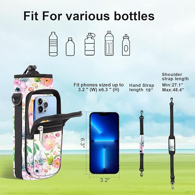 25/32/40/64oz Water Bottle Bag Holder Carrier-Insulated Crossbody Sling Case Sleeve with Strap & Pockets for Men Women Gym Cycling Travel Walking Hiking Camping
