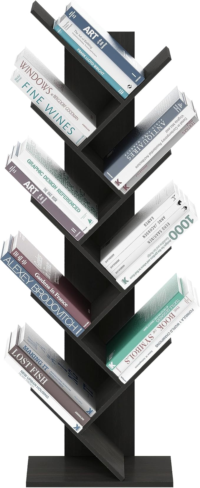 - Unique and modern bookshelf with a tree design, this bookshelf features 9 tiers to accommodate plenty of your book collections.