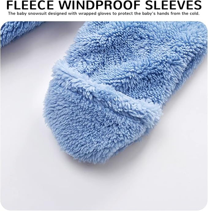- ❤♥Material: This baby snow suit made of high quality polyester fiber, double lining, fine polyester fiber cares for baby's delicate skin. The newborn winter outfit hoodie whole body jumpsuit design, keeps the baby's head and ears inside and warm when outing. The toddler boys & girls snow suit accompanies the baby through the cold winter.