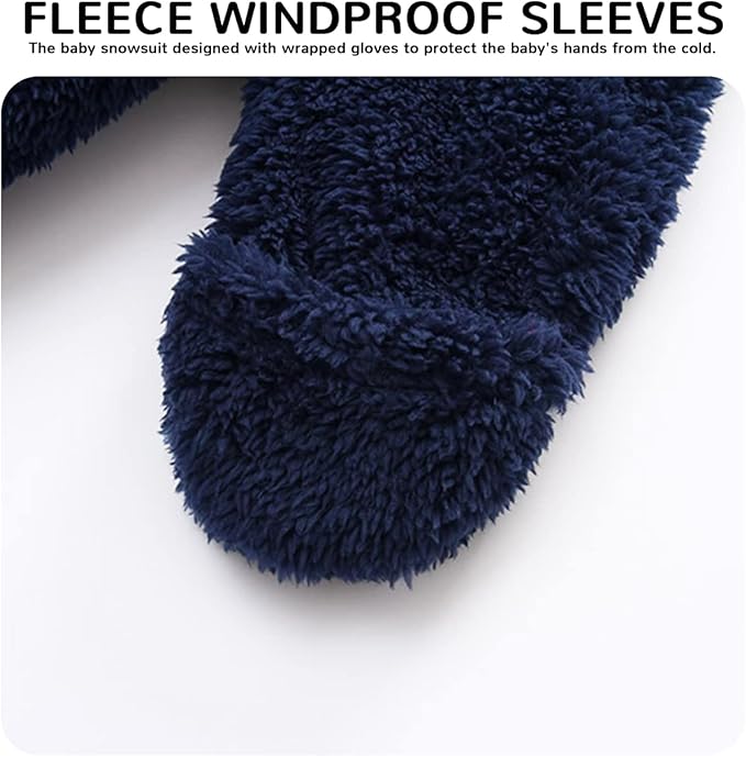 - ❤♥Material: This baby snow suit made of high quality polyester fiber, double lining, fine polyester fiber cares for baby's delicate skin. The newborn winter outfit hoodie whole body jumpsuit design, keeps the baby's head and ears inside and warm when outing. The toddler boys & girls snow suit accompanies the baby through the cold winter.