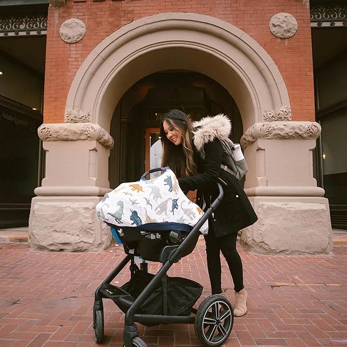 Little Unicorn Breathable Car Seat Canopy | Magnetic Closure Cover & Universal Fit | Protection & Privacy for Baby (Dino Friends)