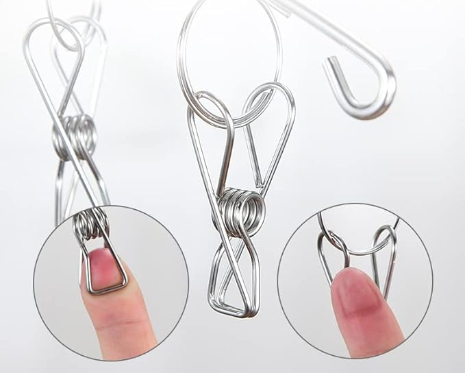 - Feature:solid windproof hook,sturdy rustproof clips,easy to use,portable space saver for air drying,they are slim and about the same size as a regular hanger and enough clips to maximize use of space,clips open and close very easily and don't damage clothes at all